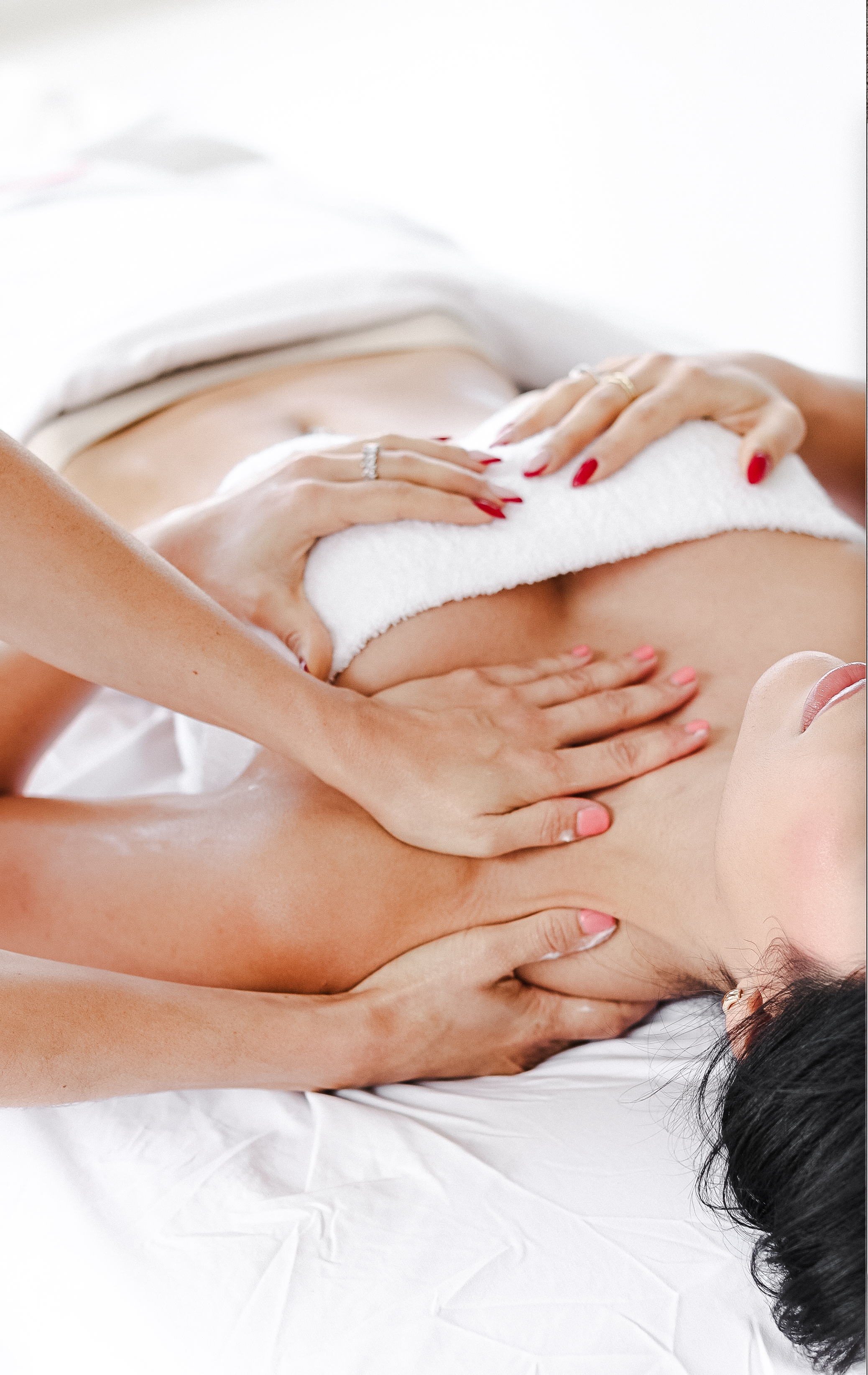 Manual lymphatic drainage is a specialized technique that targets your lymphatic system specifically - not just your muscles. The movements are lighter and more rhythmic than a traditional massage, focused on activating lymph node pathways and moving fluid.